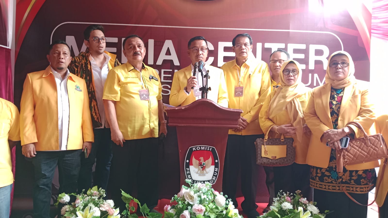 Padang, - Partai Golongan Karya (Golkar) provinsi Sumatera Barat konsisten menunjukkan keseriusannya dalam mendaftarkan calon legislatif (Caleg) potensial dalam melakukan pendaftaran di KPU Sumbar, Sabtu (13/5/2023).Memasuki halaman KPU Sumbar pukul 13.00 Wib, Ketua yang juga bupati Solok Selatan Khairunas didampingi sekretaris merupakan mantan wakil bupati Solok dan beberapa anggota DPRD Sumbar, diantaranya Afrizal serta Siti Izati Aziz, membawa caleg potensial peraih kursi legislatif nantinya pada pemilu February 2024 mendatang.