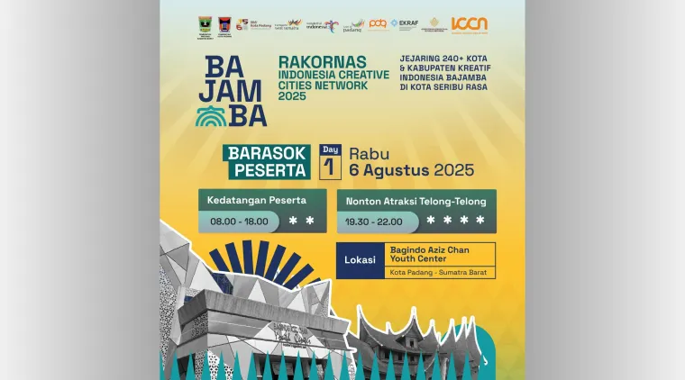 PADANG - Gelaran Rapat Koordinasi Nasional (Rakornas) Indonesia Creative Cities Network (ICCN) resmi dimulai, Rabu (6/8/2025). Ratusan jejaring kreatif dari berbagai daerah di Indonesia menyerbu Kota Padang, disambut hangat dengan nuansa khas Minangkabau.