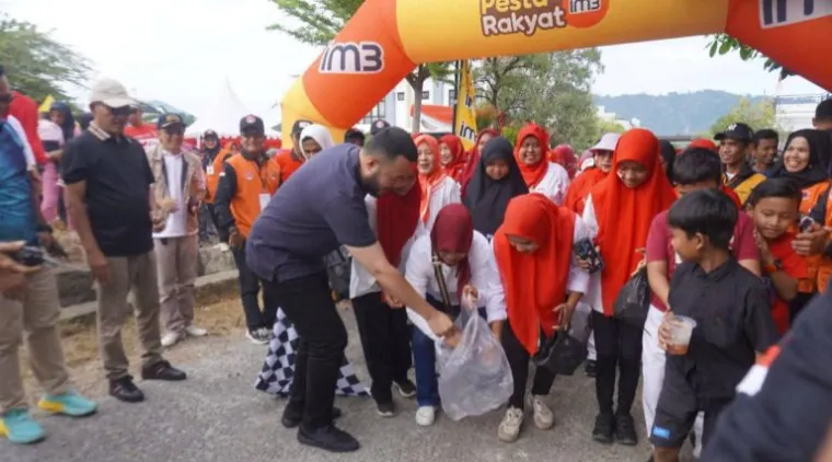 PADANG - Warga antusias mengikuti kegiatan Jalan Sehat Lihat Sampah Ambil (Jaselisa) yang digagas Kelompok Siaga Bencana (KSB) Padang Timur dalam rangka menyemarakan Hari Ulang Tahun (HUT) ke- 80 Republik Indonesia di halaman Kantor Camat Padang Timur, Minggu (24/8/2025).