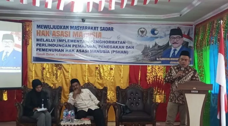 TANAH DATAR - Anggota DPR RI Shadiq Pasadigoe menggelar kegiatan sosialisasi meningkatkan kesadaran masyarakat terhadap pentingnya Hak Asasi Manusia (HAM) pada Kamis (4/9/2025).