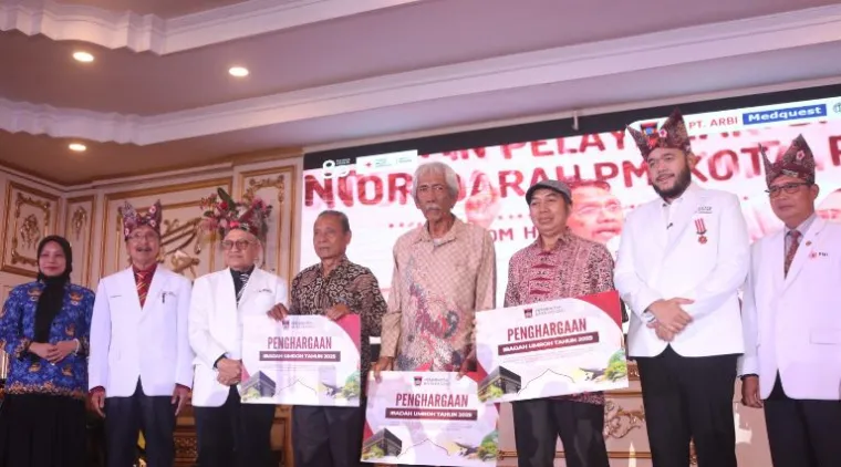 PADANG - Berbeda dari tahun sebelumnya, momen perayaan Hari Ulang Tahun (HUT) Palang Merah Indonesia yang ke-80 tahun ini diwarnai dengan acara Gathering Para Penggerak Donor Darah dan Penyerahan Hadiah Ibadah Umroh kepada 3 orang Relawan Donor Darah PMI Kota Padang di Ballroom Universitas Baiturrahmah, Rabu (17/9/2025).