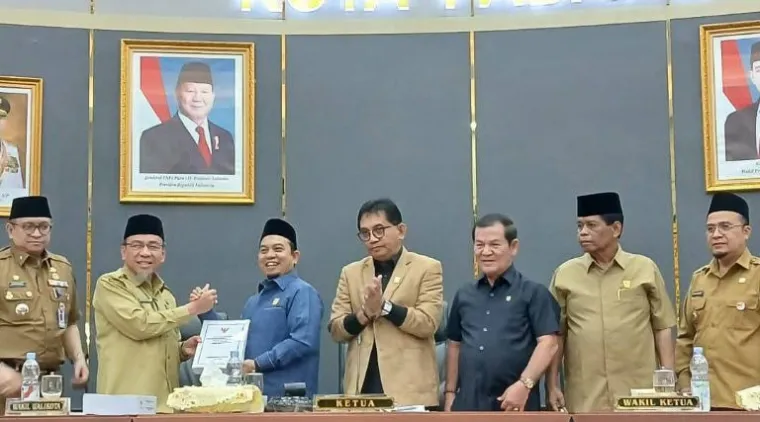 PADANG - Wakil Wali Kota Padang, Maigus Nasir, menyampaikan nota pengantar Rancangan Peraturan Daerah (Ranperda) tentang Anggaran Pendapatan dan Belanja Daerah (APBD) Tahun 2026 dalam sidang paripurna DPRD Kota Padang yang digelar pada Senin (13/10/2025), di ruang sidang utama DPRD.