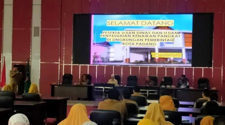 Teks Foto : Wakil Walikota membuka kegiatan Ujian Dinas dan Ujian Penyesuaian Kenaikan Pangkat di Balai Kota Padang, Senin (13/10/2025). IST