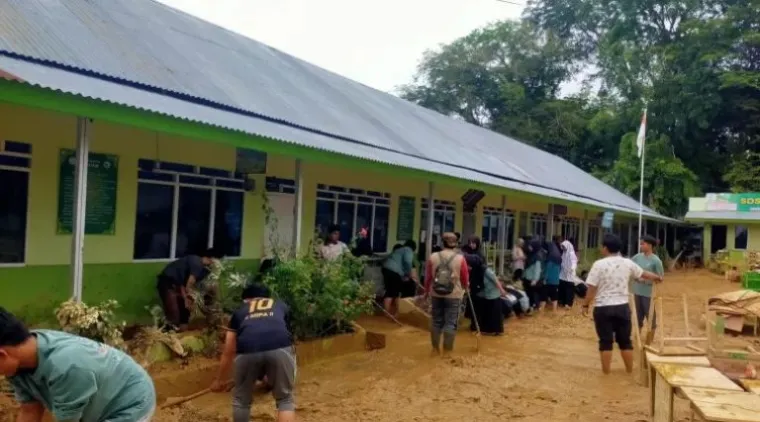 Pembersihan sekolah menjadi salah satu fokus setelah banjir mereda, mengingat aktivitas belajar mengajar membutuhkan lingkungan yang higienis dan aman.