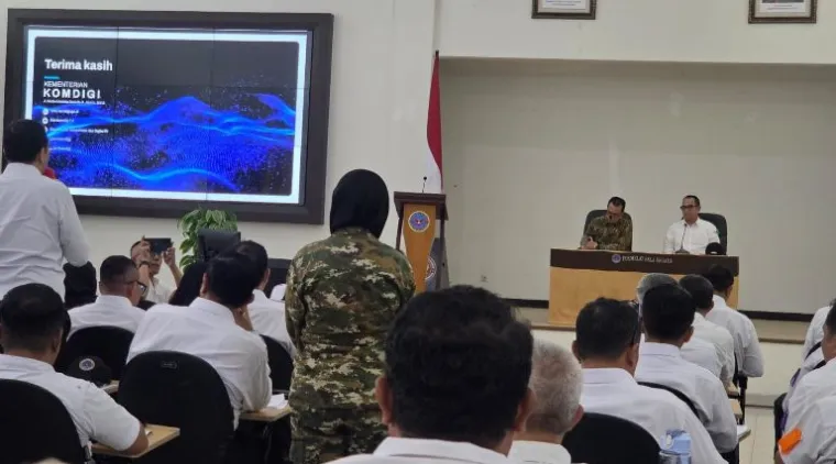 BOGOR - Wamen Komdigi Nezar Patria menyampaikan soal Artificial Intelligence (AI) atau kecerdasan buatan pada Retret Bela Negara PWI, Jumat (30/1-2026) di Aula Manunggal Pusat Kompetensi Bela Negara BPSDM HAN Kemhan RI, Rumpin Bogor.