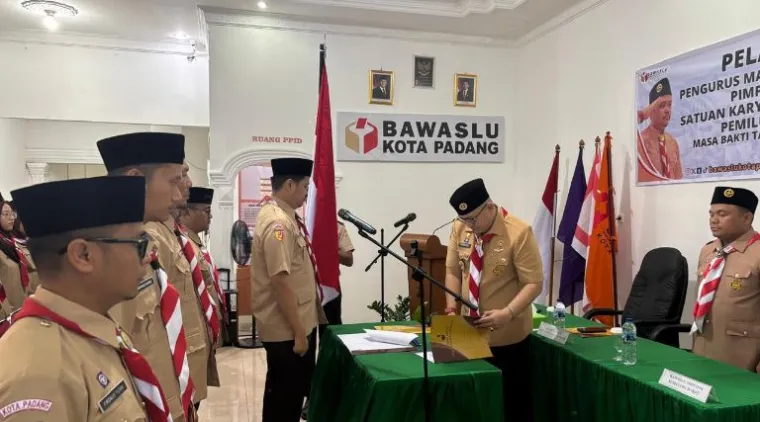 PADANG - Upaya memperkuat peran generasi muda dalam menjaga kualitas demokrasi mengemuka dalam pelantikan pengurus Majelis Pembimbing dan Pimpinan Cabang Satuan Karya (Saka) Pramuka Adhyasta Pemilu Kota Padang masa bakti 2025–2030 yang digelar di Aula Bawaslu Kota Padang, Jumat (30/1/2026).