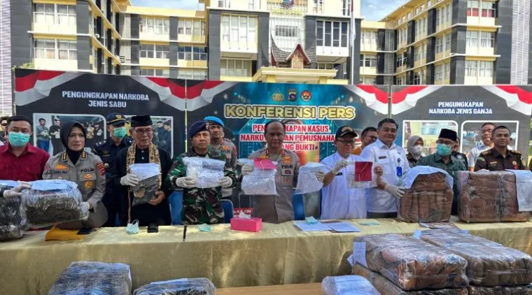 Kapolda Sumbar Gatot Tri Suryanta menyampaikan, total barang bukti yang disita dari tujuh kasus tersebut mencapai 9.919,76 gram sabu dan 110.366,31 gram ganja.